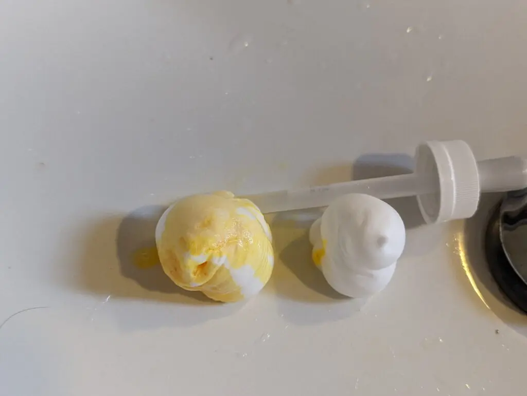 - 正品反應: 會瞬間產生化學反應,液體或者慕斯變成 黃褐色或橘紅色(因為 Minoxidil 分子結構被氧化)。
