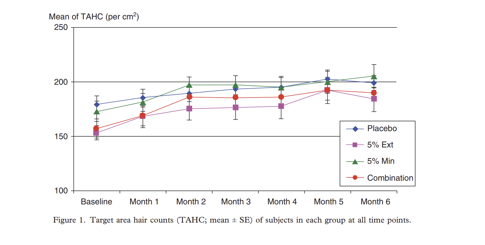 這篇論文的實驗數據顯示使用這種薑黃萃取物六個月後效果與使用5% minoxidil 相比,效果接近。